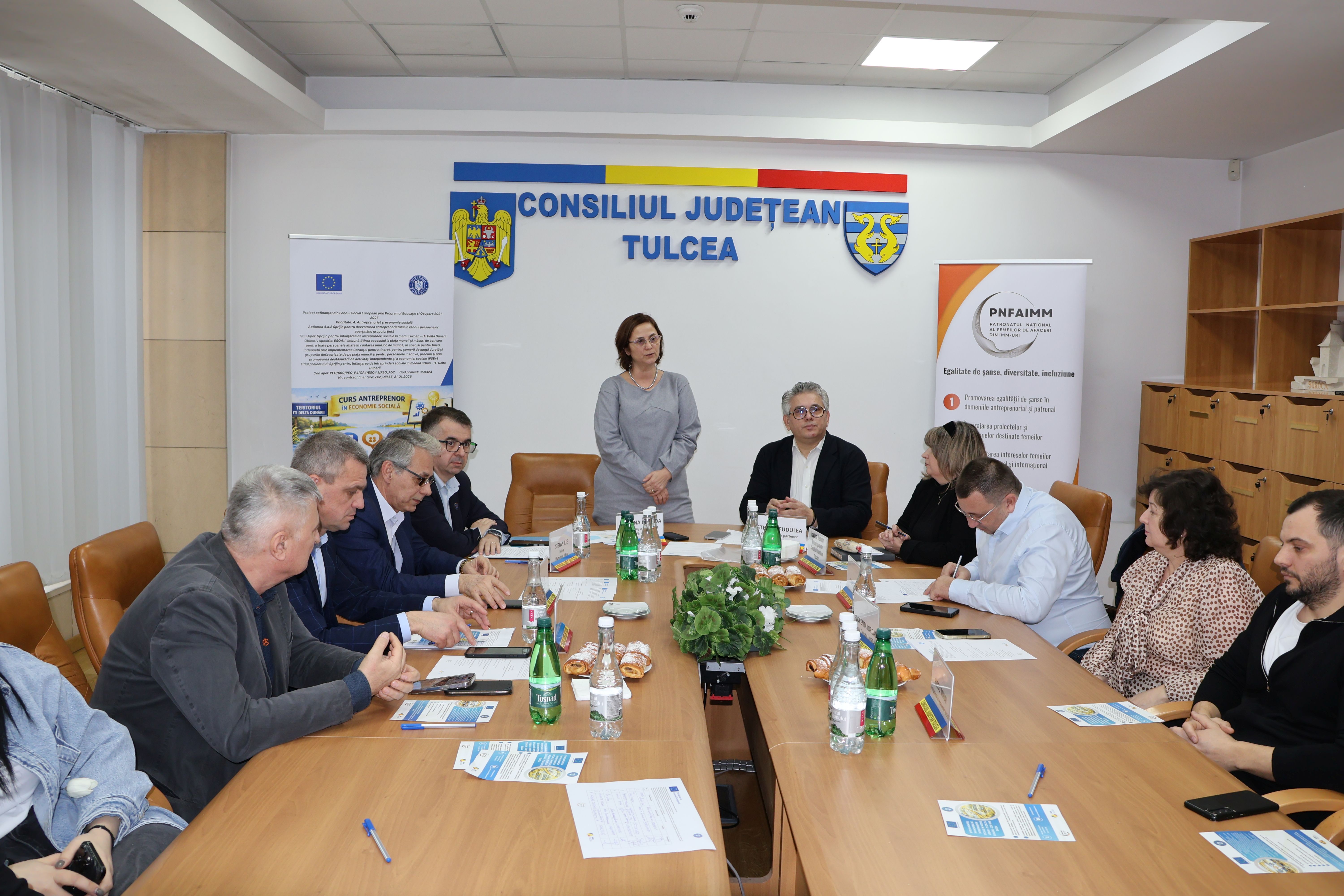 Luni, 23 februarie 2026, vicepreședintele Consiliului Județean Tulcea, Lavinia Vizauer, a participat la Conferința de lansare a proiectului „Sprijin pentru înființarea de întreprinderi sociale în mediul urban – ITI Delta Dunării", proiect cofinanțat prin Programul Educație și Ocupare 2021–2027. Evenimentul a fost organizat de Patronatul Național al Femeilor de Afaceri din IMM, în colaborare cu Patronatul Întreprinderilor Mici și Mijlocii Tulcea, proiectul fiind dedicat dezvoltării economiei sociale în regiunea ITI Delta Dunării.