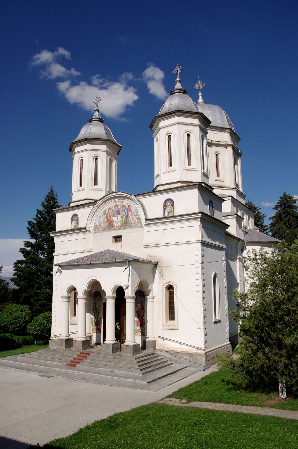 Biserica este o construcție masivă din piatră în forma de cruce. Absidele din naos sunt adânci și foarte largi. Naosul se delimitează de pronaos prin doi stâlpi voluminoși, câte unul pe fiecare parte, lipiți de zid. Are un pridvor închis, în care se intră printr-o ușă masivă, în două canaturi, înaltă, cu geam în partea superioară.