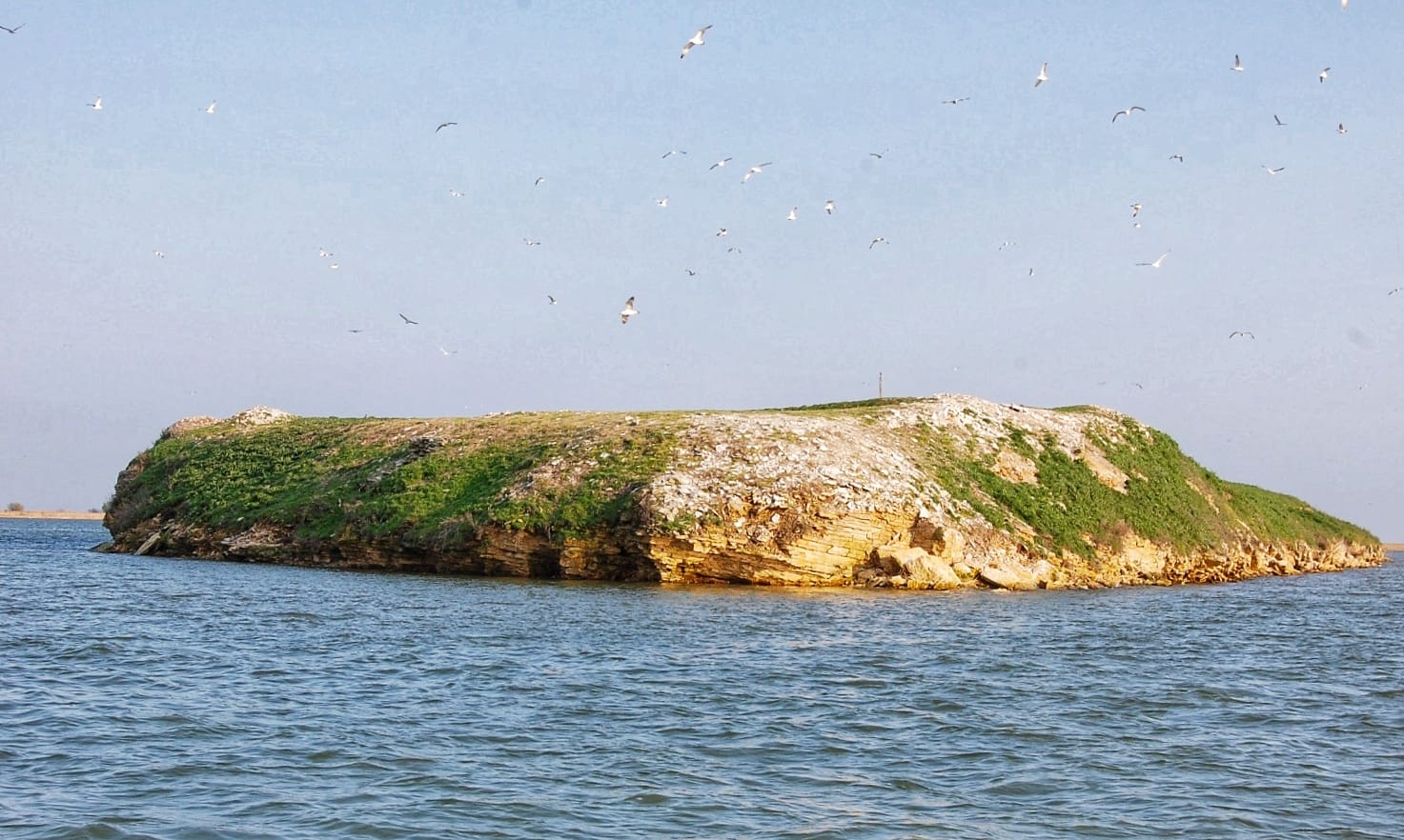 Lungă de 360 de metri şi lată de 58 de metri, jumătate stâncoasă şi acoperită de stuf, jumătate ocupată de o colină de calcar înaltă de 9 metri, cu margini foarte abrupte, aproape de vertical, insula este inclusă în Rezervaţia ornitologică Periteasca-Insula Bisericuţa-Gura Porţitei, de care o separă un canal lat de 9 metri.